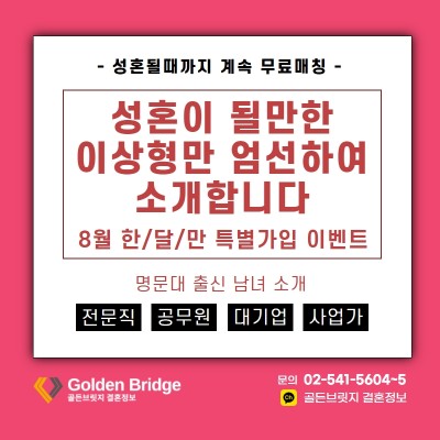 ⓒ 2019 골든브릿지 결혼정보. All Rights Reserved.